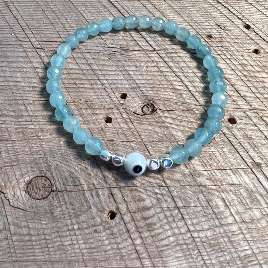 SariBlue® Aqua Quartzite Bracelet with Sterling Silver Beads & Clear Evil Eye