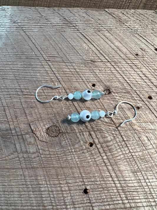 SariBlue® Aqua Quartzite Earrings with Clear Evil Eye on Sterling Silver Hooks