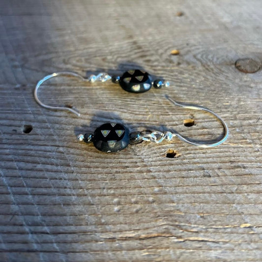 SariBlue® Tiny Triangles on Black Czech Glass Earrings