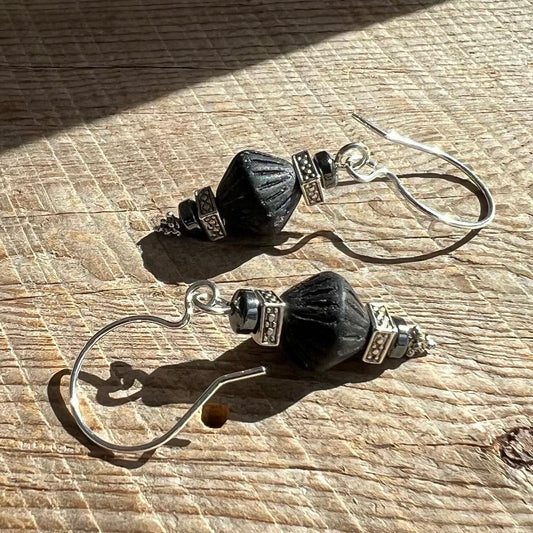 SariBlue® Midnight Pressed Czech Glass with Hematite Earrings