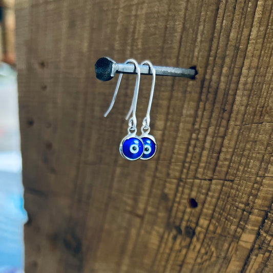 SariBlue® Mini Dark Blue Crystal Evil Eye Earrings on Petite Sterling Silver Hooks