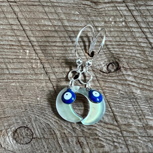 SariBlue® Iridescent Crescent Moon and Evil Eye Earrings