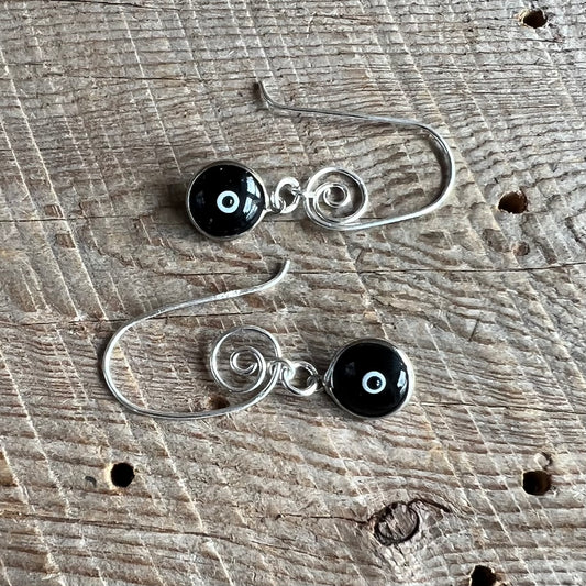 SariBlue® Black Austrian Crystals Evil Eye Earrings on Sterling Silver Swirl Hooks