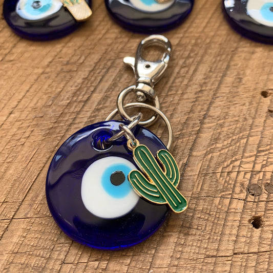 SariBlue® Teardrop Evil Eye Keychain with Succulent Lovers Charm