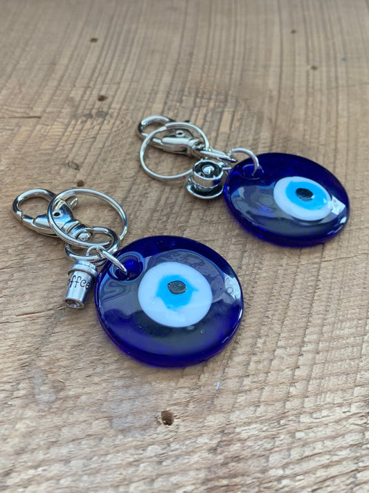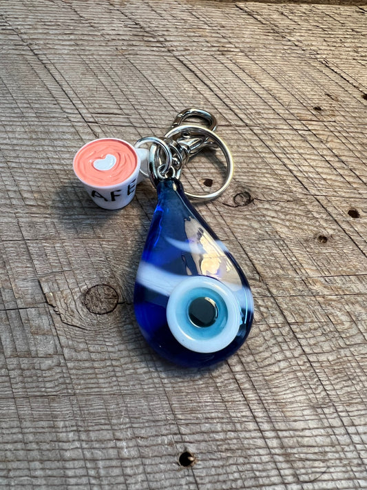 SariBlue® Striped Teardrop Evil Eye with Coffee Cup Charm Keychain
