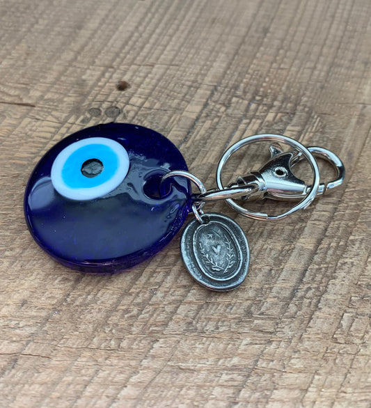 SariBlue® Blue Evil Eye Keychain with Mantra Wax Seal Charm