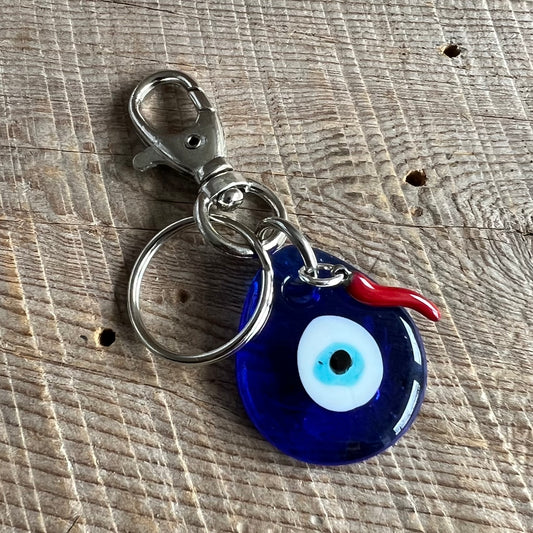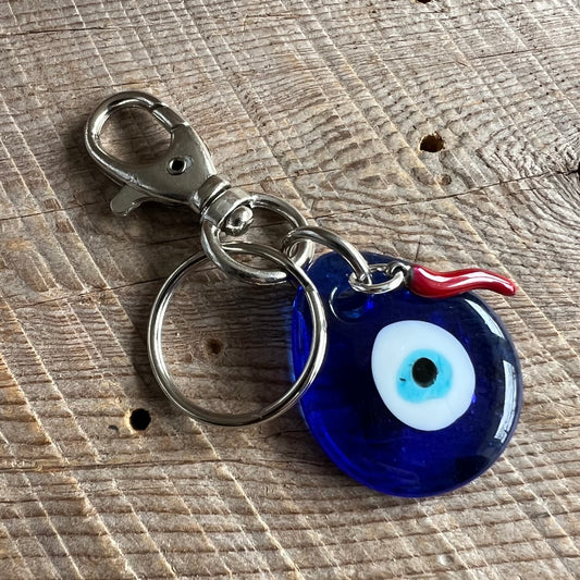 SariBlue® Blue Teardrop Evil Eye Keychain with Red Cornicello Charm
