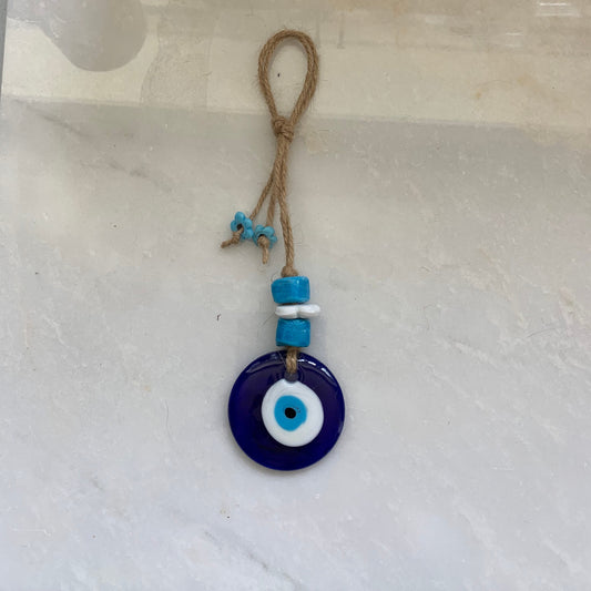 SariBlue® Traditional Blue Evil Eye Home Decor Hanging Pendant with Beads & Hemp Twine