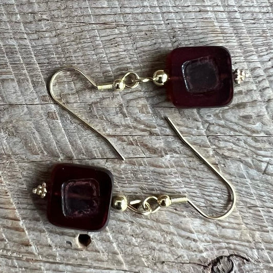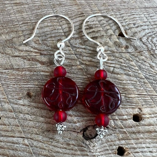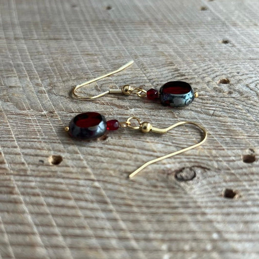 SariBlue® Journey Antique Red Czech Glass Earrings