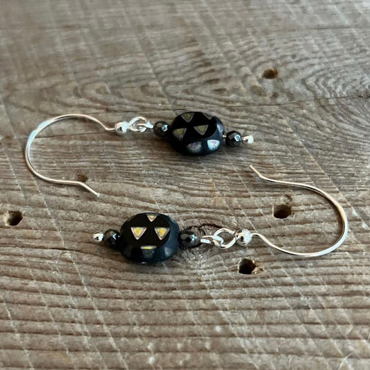 SariBlue® Tiny Triangles on Black Czech Glass Earrings