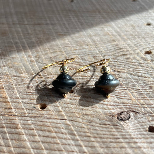 SariBlue® Midnight Pressed Czech Glass with Hematite Earrings
