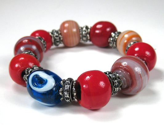 SariBlue® Blue Evil Eye and Red Glass Handmade Bead Bracelet