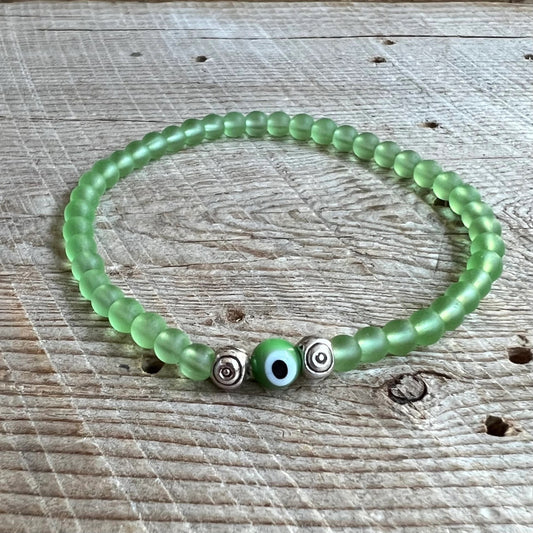 SariBlue® Cultured Seaglass Evil Eye Bracelet - Lime MINI