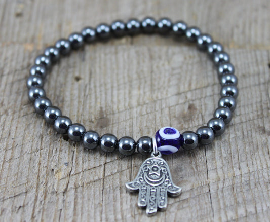 SariBlue® Blue Evil Eye Hematite Bracelet