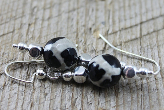 SariBlue® Black and White Agate Dangle Earrings As Seen on SVU