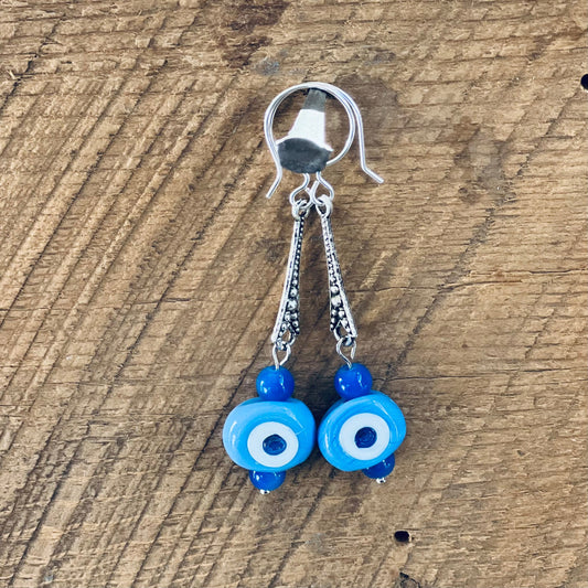 SariBlue® Boho Cornflower Blue Evil Eye Dangle Earrings