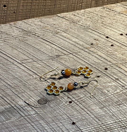 SariBlue® Honeycomb Golden Quartzite and Evil Eye Earrings