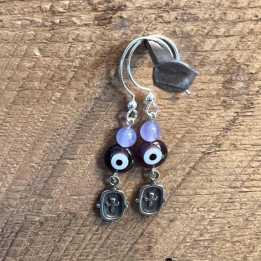SariBlue® Lavender Quartzite and Purple Evil Eye Shield Earrings