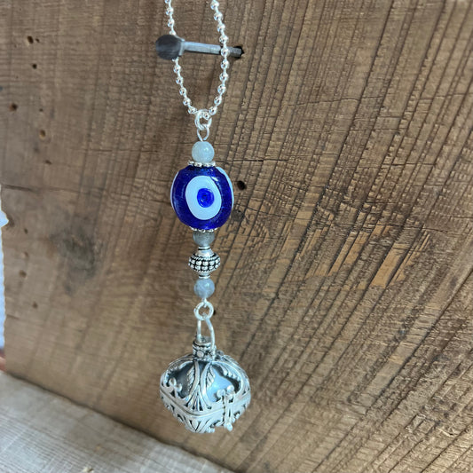 SariBlue® Labradorite and Blue Evil Eye Baby Belly Bell® Maternity Necklace
