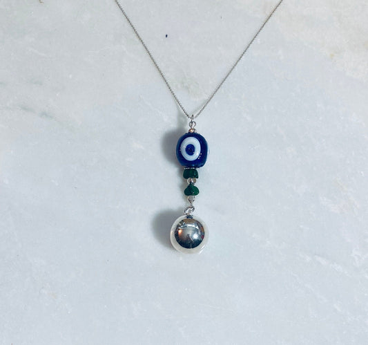 SariBlue® Green Glass Evil Eye Baby Belly Bell® Angel Caller Maternity Necklace