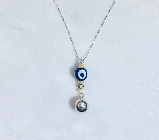 SariBlue® Natural Yellow Agate Evil Eye Baby Belly Bell® Maternity Necklace