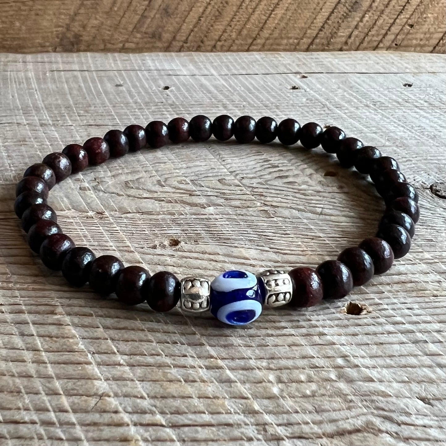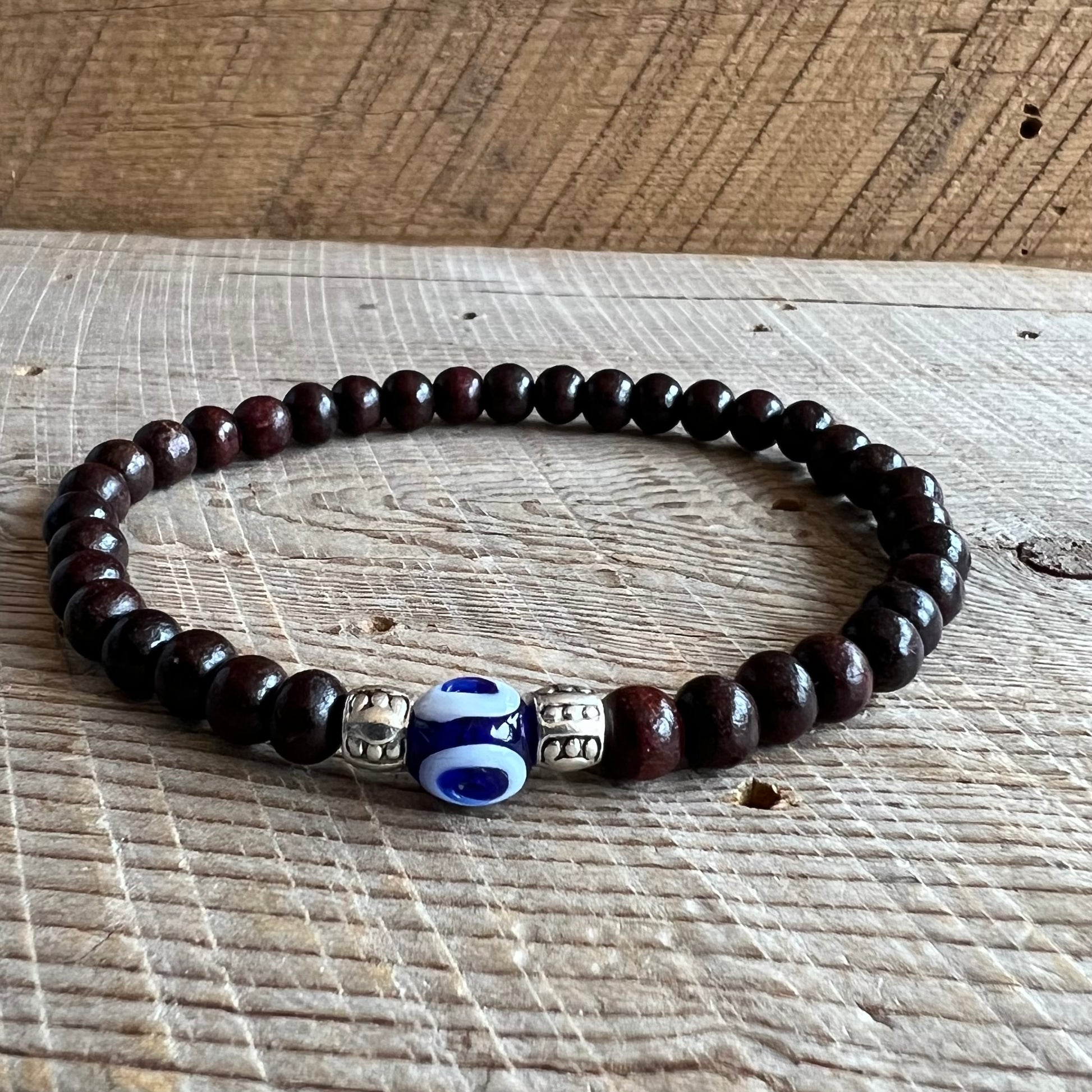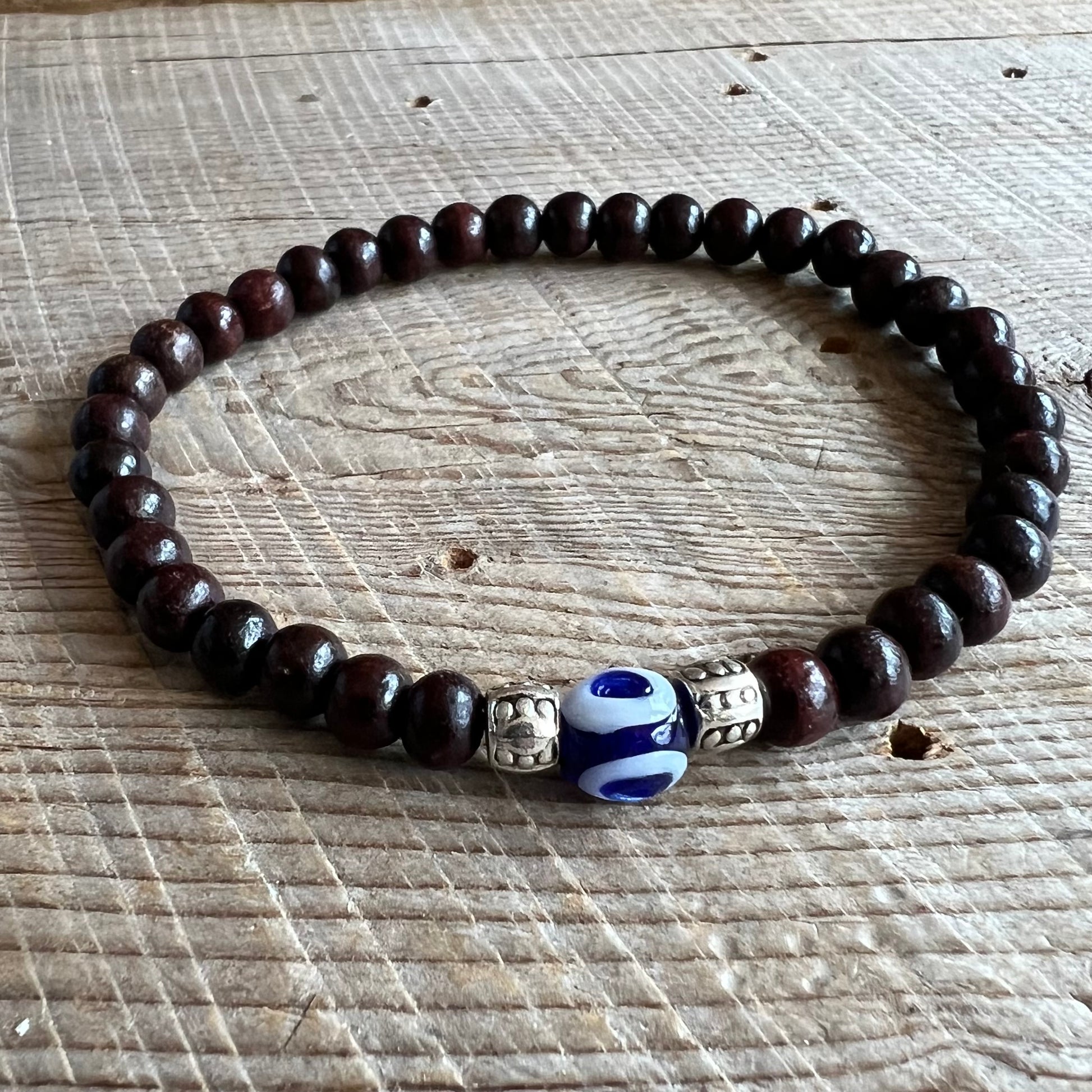 Silver beads are on either side of the handmade Turkish evil eye bead. The dark blue evil eye, for overall protection gives this bracelet a sense of grounding and good luck.