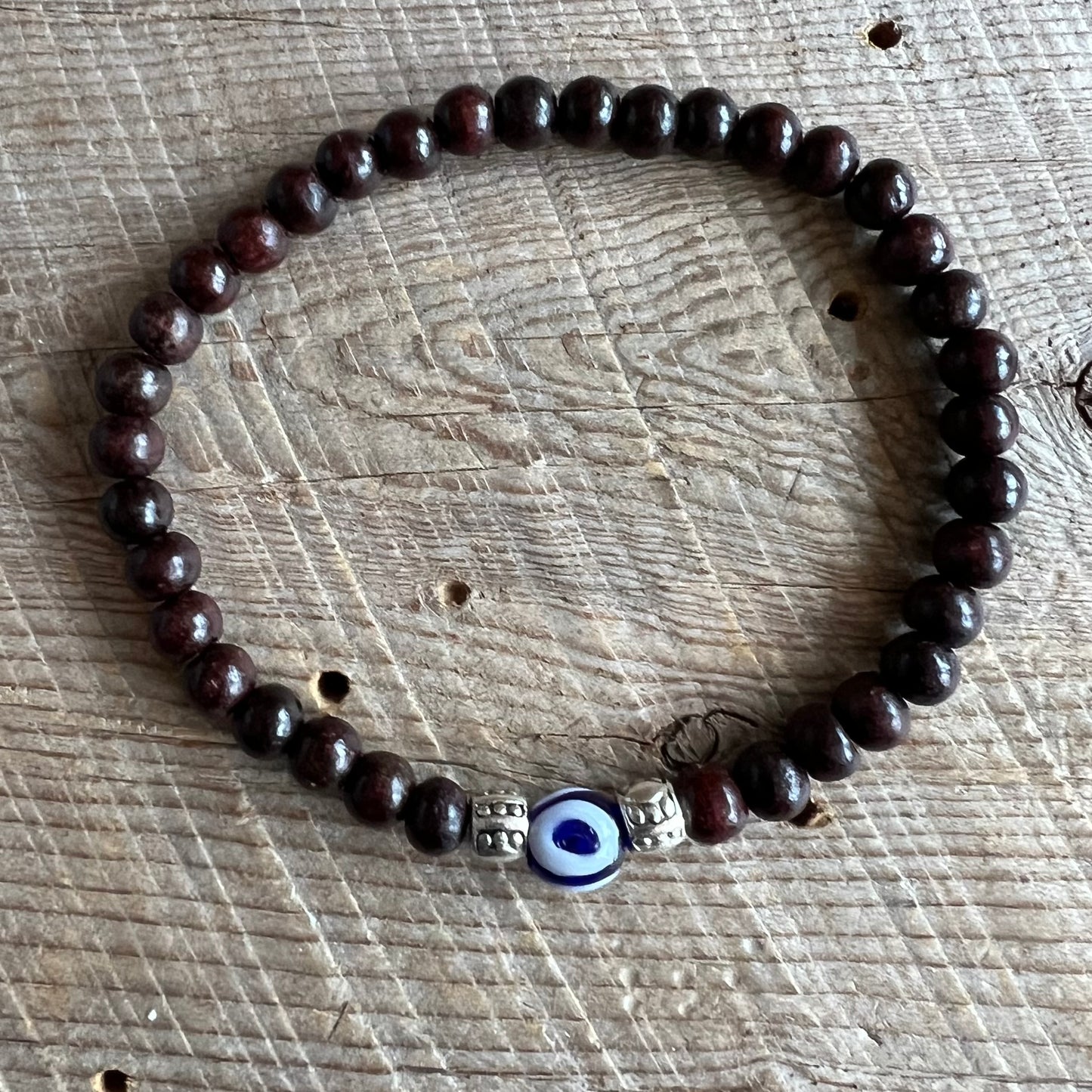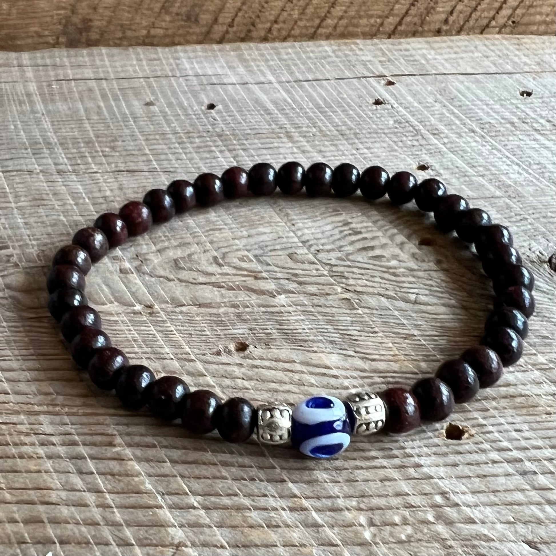 This bracelet is made with 6mm rosewood beads repurposed from prayer beads. This is great alone for a minimalist look or perfect in a stack of beaded bracelets.