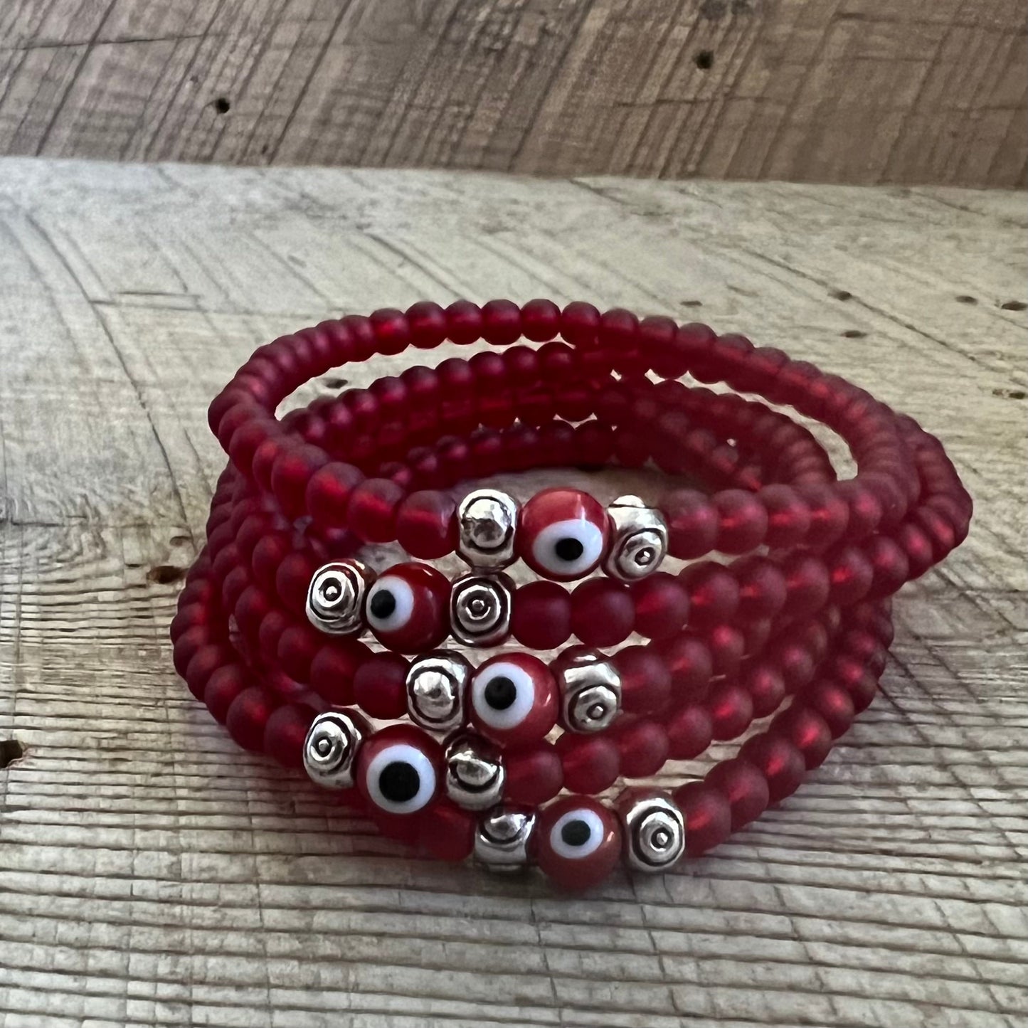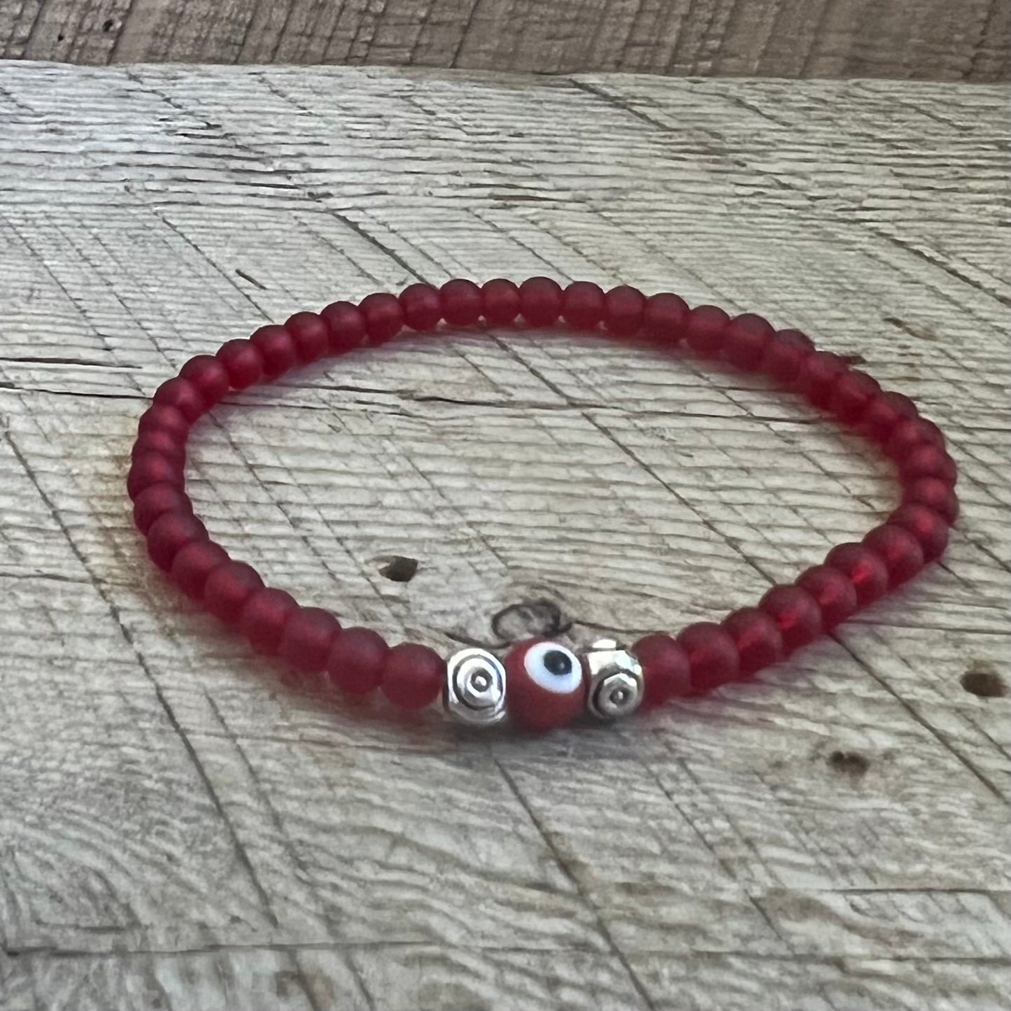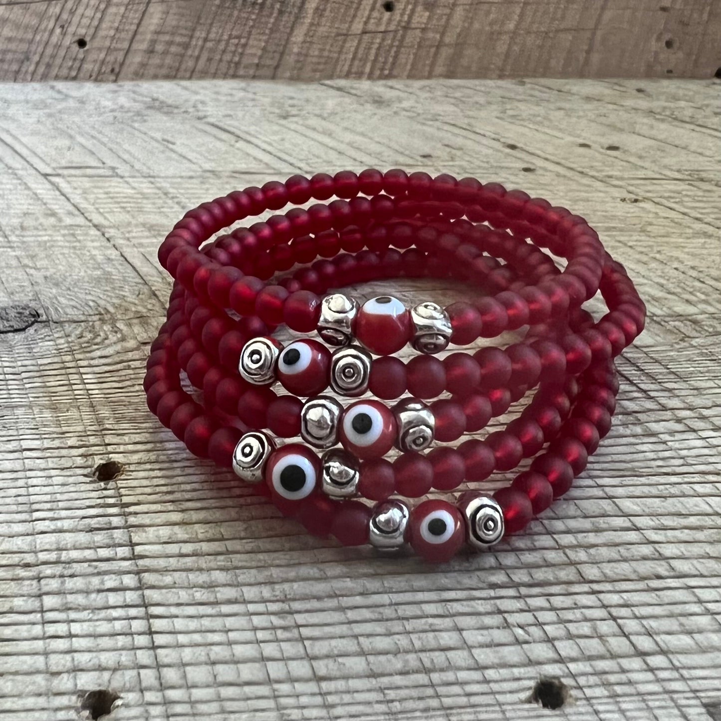 SariBlue® Cultured Seaglass Evil Eye Bracelets TRUE RED MINI