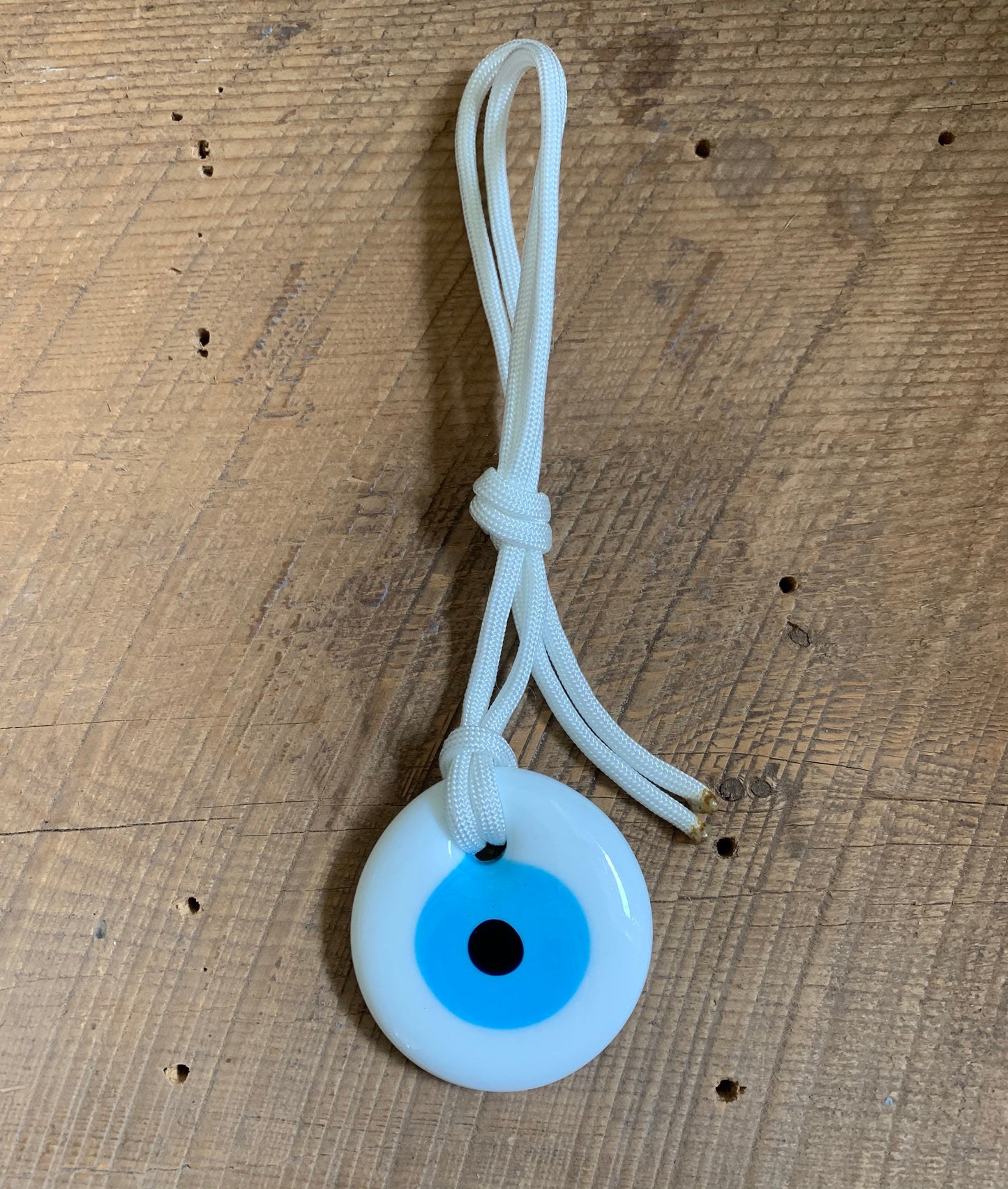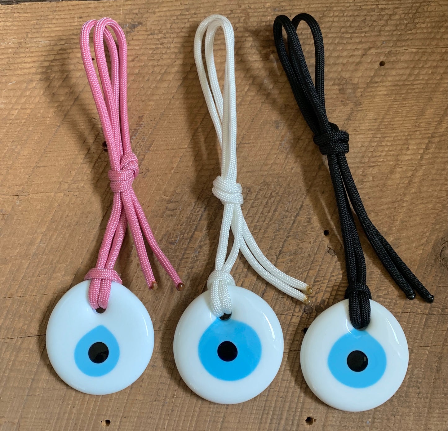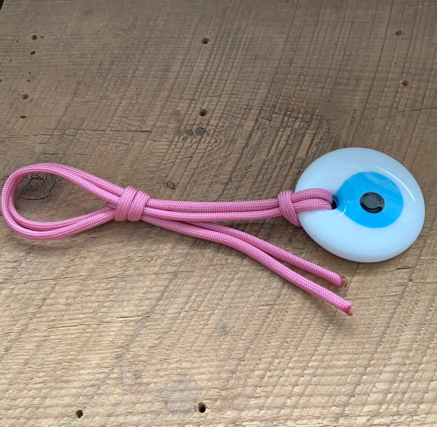 This Unique White Evil Eye pendant hangs from pink, white or black paracord so you can easily hang it anywhere. These handmade amulets are all unique. These White Evil Eyes are hard to find! We love how they look on paracord and really make an awesome gift! This Nazar Boncuk Evil Eye Decor brings Protection as a Talisman for Housewarming or Hostess or Off to College Gift. They also make an amazing party favor!